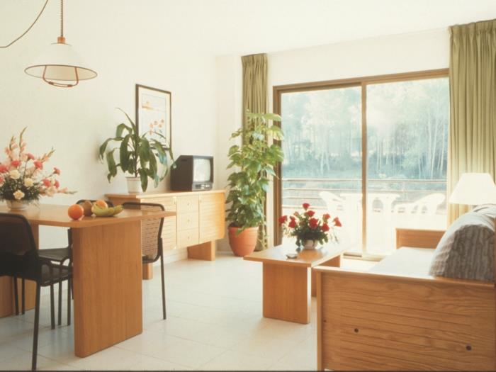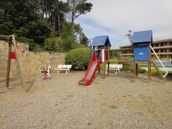 Estudis per a 4 persones amb terrassa amb boniques vistes al jardí i piscina. Compten amb ascensor i possibilitat de pàrquing. Disposen d'un sofà-llit doble i de dos llits individuals. Compten amb un bany complet amb banyera. Possibilitat de pagar a recepció per tovalloles i roba de llit. Compten amb una cuina equipada i vaixella. Disposen de televisió satélital i d'internet. Compten amb totes les comoditats. La platja es troba a poca distància a 800m, també compten amb un camp de golf a 50m. Compten amb una bella piscina per a adults i per a nens. També compten amb un jardí i una zona infantil. Zona molt tranquil i verd. Ideal parelles, persones que gaudeixin del golf i de les activitats a l'aire lliure. També per a les persones interessades en gaudir de la platja.