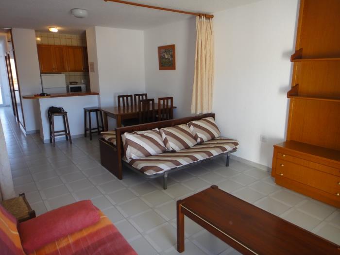 Conjunt d´immobles d´apartaments. Tenen menjador-saló amb 1 sofà-llit doble i un individual, separats entre si per una cortina (maxim tres persones), kitchenette, bany complet i terrassa. Tots amb rentadora i TV.