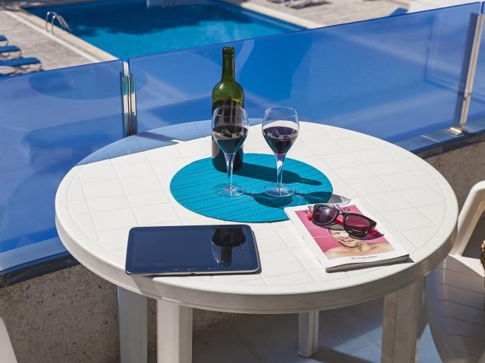 Apartaments per a sis persones amb terrassa. Distribuïts en dues habitacions una amb llit doble i l'altra amb dos llits individuals, també compten amb dos sofà-llits individuals. Compten amb un bany complet amb banyera. Possibilitat d'incloure en la recepció roba de llit i tovalloles. Amb totes les comoditats: aire condicionat a tot l'apartament, possibilitat d'aparcament, cuina equipada, servei d'internet inclòs. A les zones comunes hi ha una piscina, un jardí i una zona infantil. La platja està a uns 150 metres dels apartaments. En un entorn molt tranquil i relaxat. Amb tot tipus de serveis al voltant. La millor opció per descobrir l'ambient de Platja d'aro i al mateix temps gaudir del relax de les vacances. No s'accepten mascotes. Ideal famílies, persones interessades en gaudir de la platja.